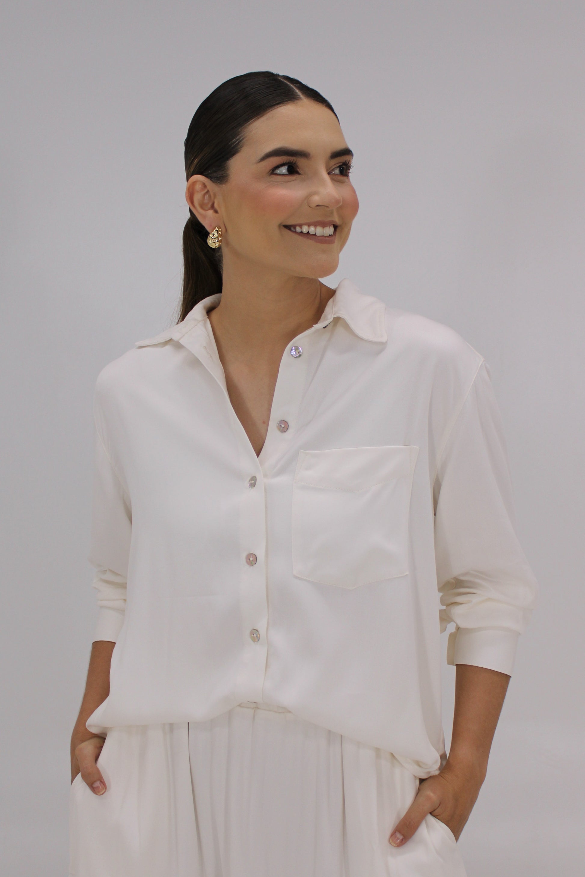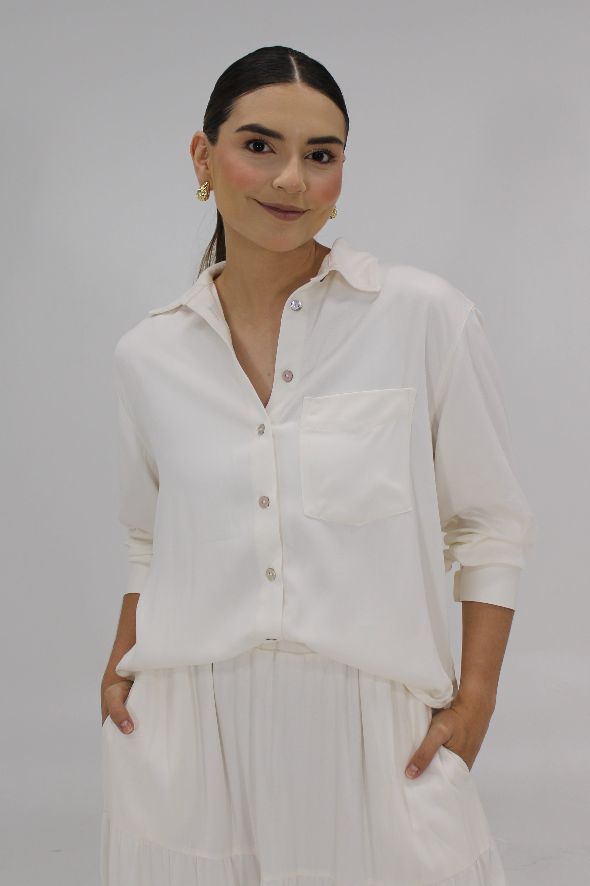 Descubre la elegancia atemporal con la Camisa Core Marfil, confeccionada en una tela suave que te encantará desde el primer contacto. Su diseño clásico de cuello y botones de nácar aporta un toque de sofisticación que combina con cualquier momento. Say hello a esta nueva imprescindible de tu clóset!!